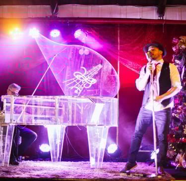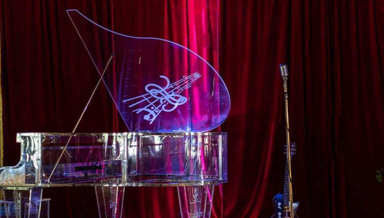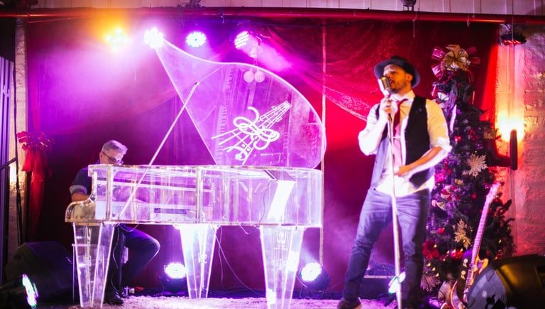 Enquanto a noite acontece, a trilha sonora acompanha cada detalhe. Um duo de músicos se apresenta ao vivo no palco principal, com um repertório elegante e envolvente, interpretado ao som do piano de cristal. A música cria o clima perfeito para conversar, celebrar e aproveitar cada instante da ceia.